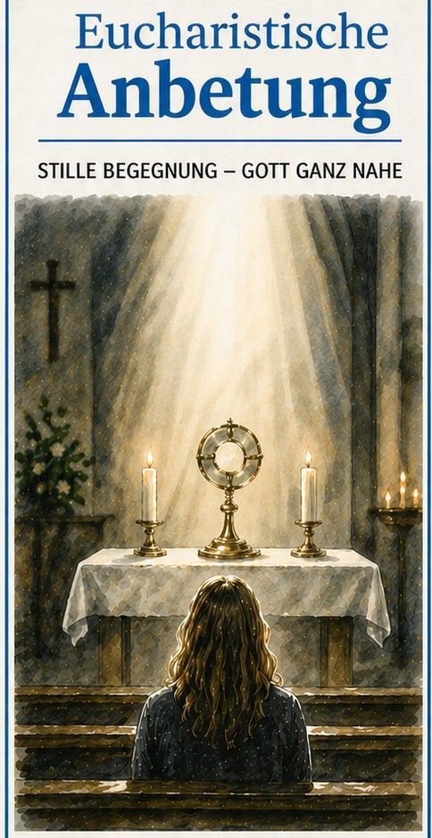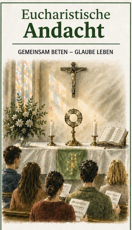 Wir laden Sie herzlich ein am 6. Mai und 3. Juni um 19 Uhr . Die eucharistische Andacht ist eine gestaltete Gebetszeit rund um die Gegenwart Jesu in der Eucharistie, in der Gegenwart des ausgesetzten Allerheiligsten. Sie verbindet gemeinsame Lieder und Gebete mit einer Schriftlesung und einem kurzen Impuls. Zeiten der Stille laden zur persönlichen Besinnung ein. So wird die Andacht zu einer lebendigen und vielfältigen Form gemeinschaftlichen Glaubens.
